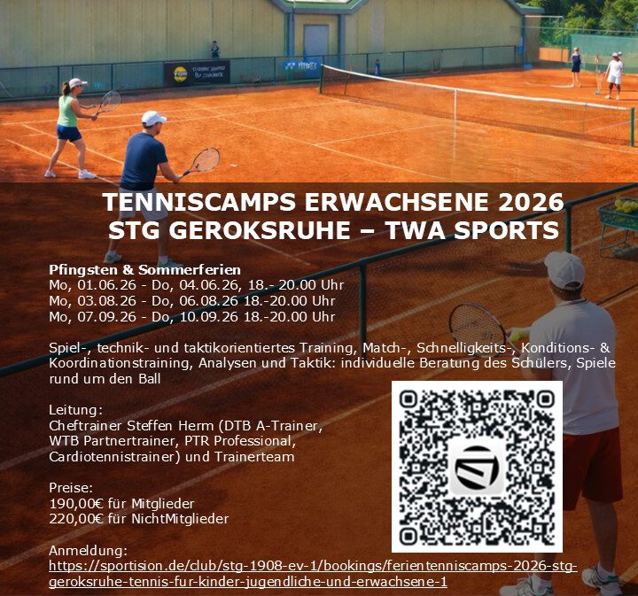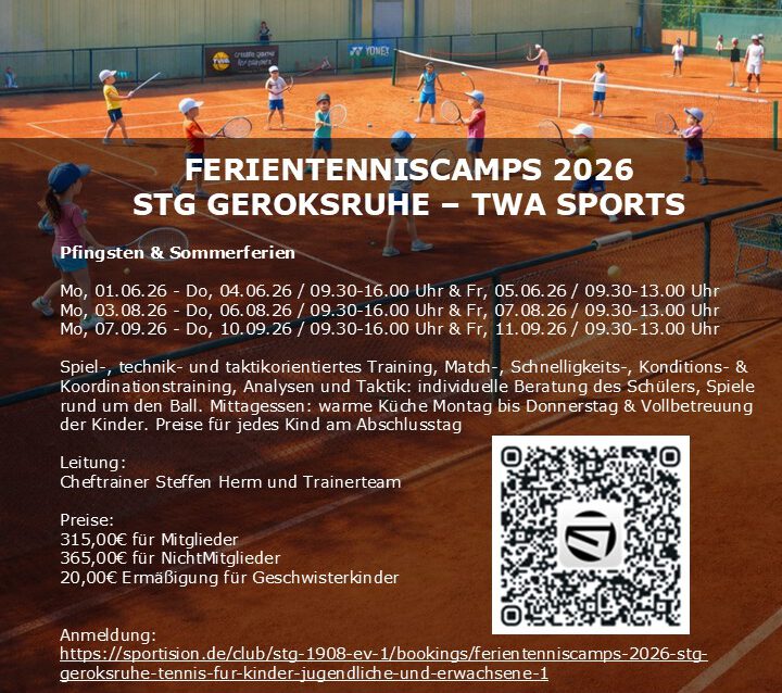 Zur Anmeldung nutzt bitte folgenden Link: Anmeldung Tenniscamps 2026 oder scannt einfach den QR-Code auf dem Flyer.